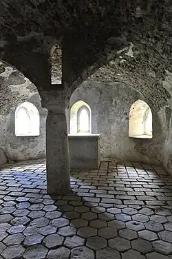 The 1848 administrative reforms turned them into offices for the forestry administration, the district courts, the tax offices, the land registry, the notaries and the town council. Another fire on 16 August 1883 destroyed the buildings' wooden roofs and ceilings but the administration was unwilling to raise funds to repair them and so they were left to fall into ruin. The grounds were acquired by the Revitalisierungsverein Klosterruine Arnoldstein association on 16 August 1883[4]