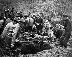 The Arnsberg Forest massacre (also known as the Massacre in Arnsberg Woods) was a series of mass extrajudicial killings of 208 forced labourers and POWs (Ostarbeiter), mainly of Russian and Polish descent,[1][2] by Nazi troops under the command of Hans Kammler[3] from 20 to 23 March 1945.