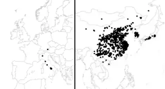 In Europe, Aromia bungii was first detected near Naples in the Campania region of southern Italy in 2010.[8] It spread in that region, causing an outbreak and is still spreading in Italy. In 2013, it was reported from an area near Milan in northern Italy. In addition, in 2020, it was found in the Lazio region of Italy, not far from Rome, and in 2023 further north in the Tuscany region. In southern Germany, an infestation of A. bungii was discovered in 2011 near Rosenheim (Bavaria).[13][10]