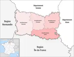 In 1800 the arrondissements of Beauvais, Clermont, Compiègne and Senlis were established. The arrondissement of Clermont was disbanded in 1926, and restored in 1942.[2]