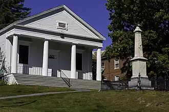 The building was constructed in 1822, primarily to provide a performance venue for the local Handel Society, a singing group that provided music to religious groups that met in the space. It was used in this capacity until 1844, when it was auctioned off. Toppan Robie, a prominent local businessman, won the auction, and promptly gave the building to the town. In return he was given the town's old town hall, and a stipulation that the building would return to his (or his heirs') ownership if it ceased to be used for town functions. The town used it for town meetings until 1960, at which time it reverted to the Robie heirs. They promptly donated the building to the state. It has since been adapted by the university for use as an art gallery.[2]