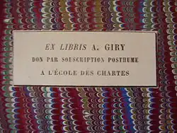 About this time personal considerations induced Giry to devote the greater part of his activity to the study of diplomatics, which had been much neglected at the École des Chartes, but had made great strides in Germany. As assistant (1883) and successor (1885) to Louis de Mas Latrie, Giry restored the study of diplomatics, which had been founded in France by Dom Jean Mabillon, to its legitimate importance. In 1894 he published his Manuel de diplomatique, a monument of lucid and well arranged erudition, which contained the fruits of his long experience of archives, original documents and textual criticism; and his pupils, especially those at the École des Hautes Études, soon caught his enthusiasm. With their collaboration he undertook the preparation of an inventory and, subsequently, of a critical edition of the Carolingian diplomas. By arrangement with Engelbert Mühlbacher and the editors of the Monumenta Germaniae Historica, this part of the joint work was reserved for Giry.[1]