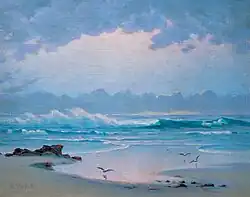 He painted landscapes, garden scenes, and seascapes of the Carmel Beach.[7]