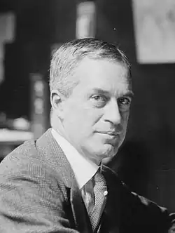 Following the end of World War I, he became an assistant to the United States Secretary of War Newton D. Baker in charge of efforts to reestablish returning American servicemen in civil life. From 1921 to 1922, he presided as chairman on Committee on Civic and Emergency Measures as part of President Warren G. Harding's Conference on Unemployment. In 1925, he was considered to succeed Roy A. Haynes as national prohibition commissioner.[8] Woods also served as trustee for the Board of Education and presided as president and chairman of the board of Rockefeller Center. In addition, he assisted John D. Rockefeller in the restoration of historic Williamsburg, Virginia, a near four-year project lasting from 1927 until 1931. In the early years of the Great Depression, he was the chairman of the President Herbert Hoover's Committee on Employment.[2][4]