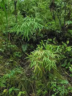 Arundinaria appalachiana, commonly known as hill cane, is a woody bamboo native to the Appalachian Mountains in the southeastern United States. The plant was elevated to the species level in 2006 based on new morphological and genetic information and was previously treated as a variety of Arundinaria tecta. The shortest member of its genus, hill cane ranges from 0.4โ1.8 metres (1 ft 4 in โ 5 ft 11 in) tall with a habit ranging from diffuse to pluri-caespitose.[2] It is one of only four temperate species of bamboo native to North America. Hill cane is common on dry to mesic sites on upland slopes, bluffs and ridges in oak-hickory forests, which distinguishes it from other species in the genus: Arundinaria gigantea typically appears along perennial streams, while Arundinaria tecta is found in swamps and other very wet areas.