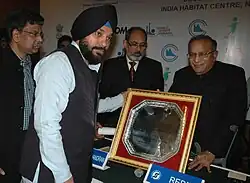 ![]() Arvinder Singh Lovely receiving the National Award for Excellence in Urban Transport from the Union Minister of Urban Development, Shri S. Jaipal Reddy, at the Valedictory Session of 2nd Urban Mobility India Conference-2009 | |
