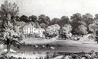 The original hall was demolished during the Boothby's time, and replaced by the present Georgian structure.[6] The land that Brookby incorporated into the hall's lands meant that a road called Cockayne Avenue had to be closed. It was long after the 6th baronet Sir Brooke Boothby lost his young daughter and died broken hearted, that the road was returned to public use (in 1922).[6]