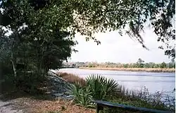 The Ashley River area contains 26 separate sites listed in the National Register of Historic Places with 22 mi (35 km) being designated a State Scenic River, extending from Sland's Bridge (US Highway 17-A) near Summerville to the Mark Clark expressway (I-526) bridge in Charleston.[5] Within this segment, a visitor can experience a blackwater swamp, the tides of the Atlantic, and much of the history of South Carolina. Some of the sites include Drayton Hall, Middleton Place, Magnolia Plantation, and the Colonial Dorchester State Historic Site. The River ranges from 6 to 8 feet in depth.
