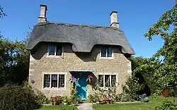 Many of the cottages in the village date from 1900–01 and were designed by Huckvale. Two more cottages were added in 1945 in the same style; Pevsner[4] refers to Ashton as a model village. The cottages are Tudor style and thatched. Almost all of the buildings the village are Grade II or II* listed.