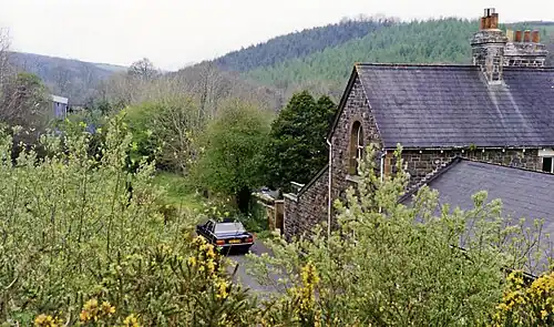 The layout was typical of all the stations on the North Cornwall line, with a substantial stationmaster's house, booking office and waiting room on the upside with both ladies' and gentlemen's toilets. An eleven-lever signal box and small open-fronted waiting shelter stood on the Down platform. The platforms were only long enough for seven-passenger carriages, but from 18 October 1936 the Up loop was extended to accommodate up to twelve coaches.[1]