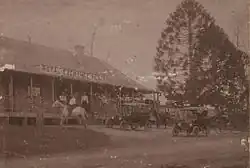 With increased traffic on Gympie Road, the Royal Exchange Hotel was established in 1875 opposite the intersection of Gympie Road and Albany Creek Road. It also operated as a general store for a while with Cobb and Co coaches passing on their way to the Gympie goldfields. In 1934, a second building was built south of the original hotel. The new building was called the "Aspley Hotel".