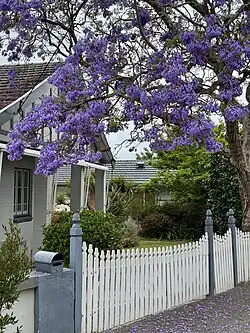 A 20th century cottage with jacaranda tree in full bloom
