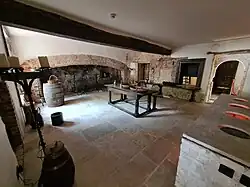 In 2019, after 62 years of ownership by the family, Patrick Cooke retired and the house [12] was purchased by economist and author Giles Keating, who has undertaken further restoration.[14] The magnificent Elizabethan kitchen, whose range had been bricked in and concealed behind modern units, has been restored and opened to the public for the first time, and many other historic rooms previously closed are now available to visit, with new lighting installed for the hammerbeam roof in the Great Hall. Furniture, lighting, soft furnishings and finishes include work by one of the country's last traditional weavers and by local blacksmiths, stonemasons and joiners, alongside items from the Tudor and later periods. Concealed solar panels and batteries, powering heat pumps, have allowed the removal of gas and oil and the estate now has net zero carbon emissions from current energy usage.[15] The house and gardens are open to the public almost all the year.[16]
