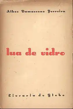 Early on, his poetic work was influenced by the Symbolism of poets such as Mallarmé, Rodenbach, and Verlaine and musicians such as Debussy, leaving two remarkable collections of pieces in this style. The first, Poemas do Sonho e da Desesperança (1925), is dedicated to his wife, Clara, and centers on the theme of mystical and spiritual love, tinged with melancholy, a sense of longing, and a desire to escape from reality, which was offset by hope and pity. The second, Poemas de Minha Cidade (1936), is one of the culminating points of Symbolism in Gaúcho (Rio Grande do Sul) lands, creating the same misty, crepuscular, and subjective atmospheres as the other work, but also adding touches of irony and humor, and revealing, as Cristiano Fretta states, "an artist aware of the universality of literature but extremely attached to the (provincial) environment in which he found himself", "which means that the artists of the time were clearly aware of what the city was then".[12] In the meantime, he had experimented with Modernism in the collection Lua de Vidro (1930),[13] which likewise remains one of the main Rio Grande do Sul contributions to this school.[3]