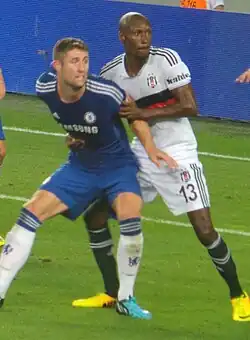 With a desire to sign for a Premier League club, Hutchinson let his contract run out with PSV and went into the summer of 2013 looking for a new team, but on 31 July it was announced that he had joined Beşiktaş in the Süper Lig on a two-year deal.[26] Hutchinson scored his first goal for the club on 23 March 2014 in a 3–0 victory over Akhisar Belediyespor.[27] After missing the first leg in the 2014–15 UEFA Champions League play-off round Hutchinson had a standout performance against Arsenal in which Arsène Wenger said Hutchinson was the most impressive Besiktas player; the game ended in a 1–0 away defeat for the Turkish side.[28]