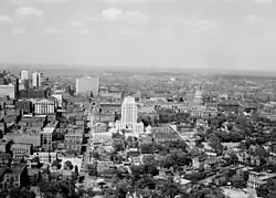 The current city hall, designed by G. Lloyd Preacher, was completed in February 1930. Located in South Downtown at 68 Mitchell Street SW, the building occupies the site of the house that General William Tecumseh Sherman took as the headquarters of his occupation after his Atlanta Campaign and before his March to the Sea (Sept.–Nov., 1864). The house was one of the few buildings in Atlanta that Sherman did not destroy. At the time, it belonged to Richard F. Lyon, an associate justice of the Supreme Court of Georgia.[3] This building is listed on the National Register of Historic Places. An annex was completed in 1989, and the building was designated a “landmark building exterior” on October 23 of that year.[4]