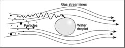 • Impaction. This is when small particles interfacing a bigger obstacle are not able to follow the curved streamlines of the flow due to their inertia, so they hit or impact the droplet. The larger the masses of the small particles facing the big one, the greater the displacement from the flow streamline.