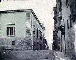 Auberge d'Aragon was designed by the Maltese architect Girolamo Cassar in 1566, making it the oldest auberge in the city of Valletta. The plot of land on which it was built was purchased on 20 September 1569 for the sum of 80 scudi and 8 tari.[4] Construction began in 1571.[5] In 1674, the Langue of Aragon built the Church of Our Lady of Pilar adjacent to the auberge. The 1693 Sicily earthquake caused serious damage to the façade and the southeast face of the auberge, but the damage was later repaired.[4] The church was also damaged, and it was rebuilt in a new design, being completed in 1718.[6]