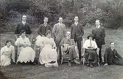 George Arthur Dunn (1865–1939) was an extremely wealthy businessman. He was the owner of the famous menswear company Dunn and Co which specialised in men's hats. In 1884 he married Lucy Day (1863–1939) and the couple had nine children who can be seen in the photo taken at "The Aubreys" in 1918.
