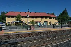 Auburn station is an Amtrak station in Auburn, California. Located at the corner of Nevada Street and Fulweiler Street, it serves as the northern terminus of the Capitol Corridor line. The station is not staffed. The platform is next to a short spur track off Track 2 of Union Pacific Railroad's route over Donner Pass.[1] Because of the geography of the city, the Union Pacific's mainline tracks are split, with Track 1 running through the eastern side of the city and Track 2 crossing the western side of the city.[6] The California Zephyr bypasses the city on its route between Roseville and Colfax primarily via Track 1. Auburn became a stop on Amtrak's Capitol Corridor in January 1998.[6]