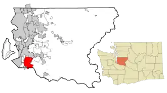 ![]() Map of King County, Washington with incorporated and unincorporated areas of Auburn highlighted | |