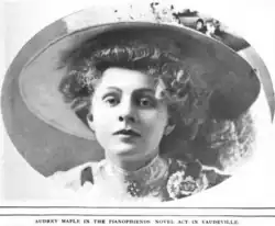 Audrey Maple performed in vaudeville in a novelty act called Pianophiends.[2] In the operetta The Love Waltz (1908-1909), she was half of a highly publicized "eight-minute kiss" during a dance scene.[3][4]