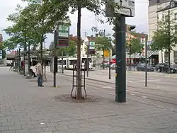 Augsburg-Oberhausen station is a keilbahnhof in the northwest of the central Augsburg in the suburb of Oberhausen in the German state of Bavaria. It is the second most important station in the city. It is classified by Deutsche Bahn as a category 4 station.[1] The current station building was built south of the old Oberhauser station in 1931/32, in the New Objectivity style. There is a large tram and bus stop in front of the station building, the exterior of which has recently been renovated.