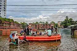 On August 21, 2024, heavy rainfall, coupled with a surge of water released from a dam in India's Tripura,[6] resulted in severe flooding that affected 73 upazilas (sub-districts) and 528 unions/municipalities across 11 districts in northeastern and southeastern Bangladesh.[1] It marks one of the worst flood events in recent history.