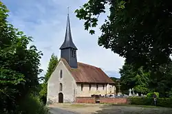 • The Church of Saint Aubin (15th century).[11] The church was decommissioned when Saint-Aubin-sur-Auquainville was incorporated into the commune of Auquainville in 1831 and was then used as a burial chapel by the Custine family. The choir with a flat apse indicates the building is from the late Middle Ages. It has a single nave and tower sitting on the western gable. The windows and door have without doubt been re-engineered in the 18th century. Inside, the building has retained all of its former layout. The Church contains many items that are registered as historical objects: