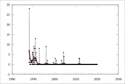 Monthly value of North Korean merchandise exports to Australia (A$ millions) since 1988