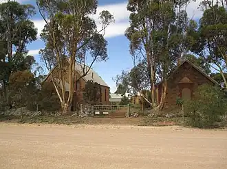 A general store and saddlery opened in 1876. Australia Plains Post Office operated from 1 April 1882 to 31 May 1971.[3] In 1883, a German Lutheran church and school were established. Later, in 1894, the church was replaced by St Johannis Lutheran Church. During World War I, the school had to close down due to the prevailing anti-German sentiment at the time.[6][7] It was replaced by a public school which operated from 1917 until 1956. St Johannis Lutheran Church closed in the 1970s, and is now a private residence.[8]