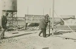 In February 1952 a prefabricated steel building was ordered from the Sidney Williams factory in Sydney. The materials were transported from Sydney by road to Birdsville via Broken Hill, Marree and the Birdsville track, a 2,000-mile (3,200 km) journey. The Rev. Les McKay spent a year in Birdsville assisting with the re-building.[1] The Queensland Governor, John Lavarack, visited Birdsville for the first time in June 1952 to set the corner post.[2]
