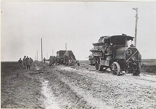 The Austro-Hungarian Army increased its artillery with an even heavier mortar, the Škoda M 11 30.5cm siege mortar, intended for use against the Italian fortifications.[3] Development of this piece began in 1906 and two dozen of them were ordered by the end of 1911. In March 1912, Austro-Daimler began work on a more powerful artillery tractor for them and the first tractors were completed by the end of the year. A rapid start was possible because the Army was in such a rush for them that it used a 'slush fund' to pay for them, rather than waiting for a formal tender and budget allocation process.[9]