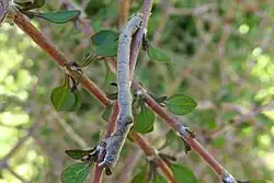 The larvae is grey in colour and has two raised areas on its abdominal segments.[4]