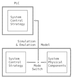 The model of the physical system is constructed separately from the control logic being tested. The model of the physical system is passive and makes no decisions. The physical model reacts to the decisions made by the control logic in the same manner as the real system would. An emulation model will operate in both emulation and simulation modes with the addition of the control strategy to the model.