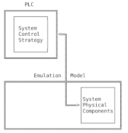 An emulation model only requires the second element. The control strategy is incorporated into the PLC logic, instead of being contained within the model.