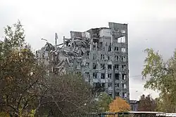 Starting in mid-April 2014, Russian separatists captured several towns in Donetsk Oblast;[7][8] including Avdiivka.[9] In July 2014 fighting during which Ukraine secured the city from the Russian separatists[10]) damaged the plant, which was hit by 165 mortar rounds during the conflict.[11][12][13] The plant stopped working on 17 August 2014 due to the increasing violence.[14] On 5 February 2015, the workers of the plant published an open letter to Ukrainian President Petro Poroshenko,[15] accusing the 25th Airborne Brigade and the volunteer Aidar Battalion of opening fire from residential areas, and asking that they be removed from the town. The letter also claimed that the town had been without water, heat and electricity for the previous six months and warned of the ecological catastrophe that could follow from further shelling of the plant. After being recaptured by the Ukrainian military, production resumed, albeit at one third capacity.[11] Much of the plant had been damaged and it was being managed from a Soviet era bunker underneath the site in order to avoid shelling.[11] In January 2017, during the Battle of Avdiivka (2017) Russian separatists shelled the town of Avdiivka with BM-21 Grad rockets, causing heavy damage to the plant's generators and disrupting gas production, as well as leaving the town without heat for several days.[16][17] The shelling killed the 10th factory employee to die since the start of the War in Donbas.[18]