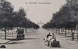 This artery, like the Boulevard du Souverain/Vorstlaan, owes much to the initiative of King Leopold II. It was designed in connection with the Brussels International Exhibition of 1897, in order to link the two sites of the exhibition: the Parc du Cinquantenaire/Jubelpark and the Palace of the Colonies, today's Royal Museum for Central Africa, in the suburb of Tervuren.[1] The work was carried out by the contractor Edmond Parmentier[2] and was completed in 1897.[3]