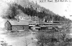 Operations in the Mill Hall area were started around 1840 by Willis Mann, who rented a blacksmith shop near Mackeyville and made axes on a small scale.[23] This operation was terminated and Willis joined the Reedsville works as a factory superintendent. After several failures at other locations, Robert relocated to Mackeyville in 1847 to work in a retail store owned by Willis.[24] In early 1849, Robert undertook a project to build an axe factory on Big Fishing Creek at a site owned by Saul McCormick.[25] Robert was now 25 years old.[26] Production started with only four employees, and just one remained after the first year.[27] When McCormick died in 1857, he was found to be insolvent and had placed a mortgage on the property. The factory was purchased by Robert at the sheriff's sale for $6,000, paid for partly by sale of 100 acres of factory-owned land. In 1866, following the death of three children due to diphtheria, Robert decided to retire to farming and sold the Mill Hall works to James, who wanted to leave Reedsville over a family dispute.[28] The transaction was never finalized. Robert was often in poor health and next enlisted management help from nephew Robert C., son of Willis. This relationship also was unsuccessful.