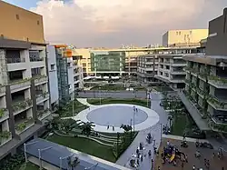 Ayala Malls Manila Bay features two buildings and five floors of retail space, with three levels of basement parking and above-ground Podium Parking from the second to eighth floor. It has the Abueva Atrium (adjacent to a street of the same name) at Building B for events, one-hectare (2.5-acre) Central Garden, IT Zone at the fourth floor, and ten digital cinemas at the fifth floor.[4] The largest among Ayala Malls, the cinemas include an A-Giant Screen cinema, while some have A-Luxe Recliner Seats.[5] The mall also hosts multiple entertainment and leisure facilities including a Timezone branch at 2,000 square meters (22,000 sq ft), formerly the largest in the country.[6] The mall also features the Seda Manila Bay Hotel, a 350-room 4-star hotel which opened its doors in July 2023, and located along the corners of Abueva Road and Aseana Avenue. The hotel was eventually planned to be opened within 2021 while entering full operations in 2022, yet was pushed back due to the effects of the COVID-19 pandemic in the country. The 12-storey hotel features 3 meeting rooms; three restaurants, namely the Misto Restaurant, Straight Up Roof Deck Bar, and the Club Lounge; an infinity pool, a game room, a mini golf course, a gym, and the Seda Spa. The hotel's lounge features artworks from Ann Pamintuan, Francisco "Paco" Guerrero, Eddie Zobel, and Jaime Zobel de Ayala.[7][8]