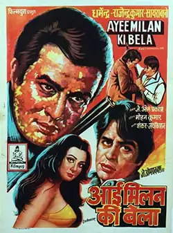 Ayee Milan Ki Bela (transl. The Moment of Meeting Has Come) is a 1964 Indian Hindi film directed by Mohan Kumar. The film was produced by J. Om Prakash. The music is by Shankar Jaikishan. The movie has stars; Rajendra Kumar, Saira Banu, Shashikala and Dharmendra in one of his rare grey characters. The film was successful at the box office.[1] The film was remade in Tamil as Oru Thaai Makkal.[2]