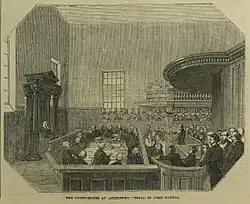 The murderer, John Tawell, who was arrested after police sent a telegraph message to Paddington Station, was tried in the courtroom and then executed in the Market Square in 1845.[2] An extension to the rear to accommodate the judge's lodgings was built to the designs of Edward Buckton Lamb and completed in 1850, while an extension to the south west, this time to accommodate the county constabulary headquarters, was built to the designs of David Brandon in a similar style to the main building and completed in 1865.[1]