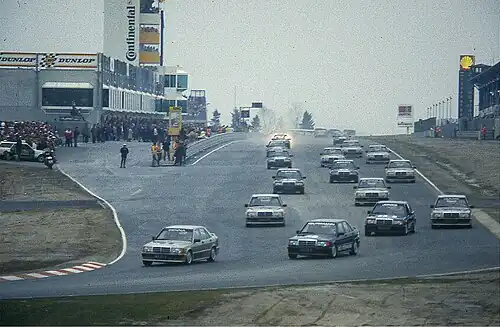Senna led at the San Marino, Monaco, British and German Grands Prix but retired from all these races either from engine failure or running out of fuel, and he had a huge accident at the French Grand Prix at the Circuit Paul Ricard's fastest corner after an engine failure in the middle of the corner. He did not finish in the points again until coming second at the Austrian Grand Prix, despite taking pole three more times in the intervening period. His determination to take pole at the Monaco Grand Prix had infuriated Alboreto and Niki Lauda; Senna had set a fast time early and was accused of deliberately baulking the other drivers by running more laps than necessary, a charge he rejected, although the accusations continued in Canada when drivers accused him of running on the racing line when on his slow down lap forcing others on qualifiers to move off line and lose time.[54] Two more podiums followed in the Netherlands and Italy, before Senna added his second victory in wet-dry conditions, at the Circuit de Spa-Francorchamps in Belgium.[55] Senna's relationship with De Angelis soured over the season, as both drivers demanded top driver status within Lotus and, after spending six years at the team, De Angelis departed for Brabham at the end of the year, convinced that Lotus were becoming focused around the Brazilian driver.[56] Senna and De Angelis finished the season 4th and 5th respectively in the driver rankings, separated by five points. In terms of qualifying, Senna had begun to establish himself as the quickest in the field; his tally of seven poles that season was far more than that of any of the other drivers. Renault's V6 qualifying engines were reported to be producing over 1,000 bhp (746 kW; 1,014 PS).[57]