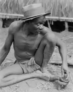 Another group of oracles that the Zande can seek is the termite oracle. The termite oracle is more readily available to all. Women, men, and children are all allowed to consult this oracle.[8] When a question is presented before these oracles, they take a branch from two trees. One branch is called the dakpa, another kpoyo. The oracle takes these branches and sticks them into a termite mound and waits overnight to see which branch the termites eat, which dictates the answer. The termite oracle is not as popular as the poison oracle, because it is more time-consuming.[9] This is less elaborate and costly than the benge oracle.[6] An example of an instance in which the termite oracle can be used in the ethnographic video Witchcraft Among the Azande when a woman in the village is sick and her husband wants to know whether or not she is going to live or die.[8]