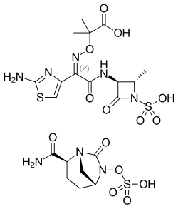 Aztreonam/avibactam, sold under the brand name Emblaveo, is a fixed-dose combination antibacterial medication used for the treatment of aerobic Gram-negative infections.[4] It is a combination of aztreonam, a monobactam antibacterial; and avibactam, a beta-lactamase inhibitor.[4] It was developed by AbbVie and Pfizer.[4][5][6]