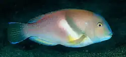 Terminal phase adults can be distinguished from initial phase adults by the nearly black caudal fin.[4]