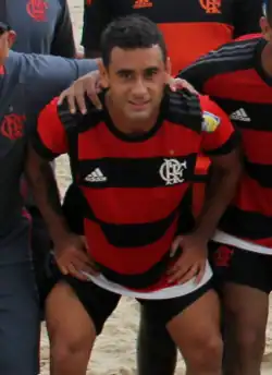Martins and his twin brother, Léo, were born in Brazil. Bê was born two minutes before his younger sibling.[1] Aged 18, they went to play association football in Spain on the promise of a contract.[2] However, when they arrived, an issue with their agent meant there was no club to sign for. The move was funded by their parents, but without an income the money soon ran out and the brothers found themselves broke and starving. Despite this, they stayed in Spain to attempt to recuperate the money for their parents.[3] Eventually, they landed a contract with CD Canillas.[4] During this time, they began the application process for Portuguese citizenship.[2] This was possible since their paternal great-grandfather was from the country. In 2009, citizenship was achieved.[5] Aged 21, in 2011, their contracts ended and their mother developed a health issue, and so they returned to Brazil. To maintain their fitness, they began training on the beach. Struggling to find a new football club, they started to pursue beach soccer instead, joining Vasco da Gama and soon after, Flamengo.[1][2] Bê progressed somewhat quicker than his brother; after impressing for Flamengo at the 2012 Mundialito de Clubes, he was offered a role at a Russian club to which he moved.[2] He was later followed by his twin.