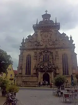 The Town Church of Bückeburg (Bückeburger Stadtkirche) was one of the first Lutheran churches built after the Reformation. It is known for its pulpit and especially for the ornately decorated bronze-cast font, made by the Dutch artist Adriaen de Vries. Composer Johann Christoph Friedrich Bach (1732–1795), a son of J.S. Bach, worked at the Bückeburg court from before 1751 until his death, first as a harpsichordist, then, from 1759, as Konzertmeister (director) of the Hofkapelle (court orchestra) there. Bach is buried in the churchyard of the Stadtkirchengemeinde-Bückeburg. Bach set several texts by Johann Gottfried Herder, who was at the Bückeburg court as its superintendent and chief preacher from 1771–1776.