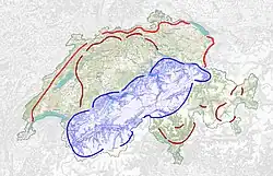 - In addition, it would have to organise a defence of Central Switzerland calculated for the long term. The defence area could include the Sargans, Grisons mountains, Gotthard - Central Switzerland and Bernese and Valais Alps. However, it is no longer possible to ensure national defence on the fortified line of Lake Zurich, Limmat, Hauenstein and Blauen on the cantonal border of Solothurn/Basel-Landschaft because German armies have advanced to the western side of the Jura."[12]