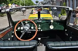 Designed by Fritz Fiedler, the 326 featured a box-section frame[5] that could readily be adapted for derivative models. Also innovative were the torsion bar rear suspension, inspired by the dead axle suspension of the Citroën Traction Avant, and the hydraulic braking system, the first to be used on a BMW car. Styled by Peter Szymanowski, the 326 was offered as a four-door sedan and as a two- or four-door cabriolet. The 326 sedan was the first BMW available with four doors.[5] The BMW 320, BMW 321, BMW 327, and BMW 335 were based on the 326.[6] The streamlined form of the body contrasted with previous relatively upright BMWs: drag was presumably reduced further by including a fixed cover over the spare wheel at the back.